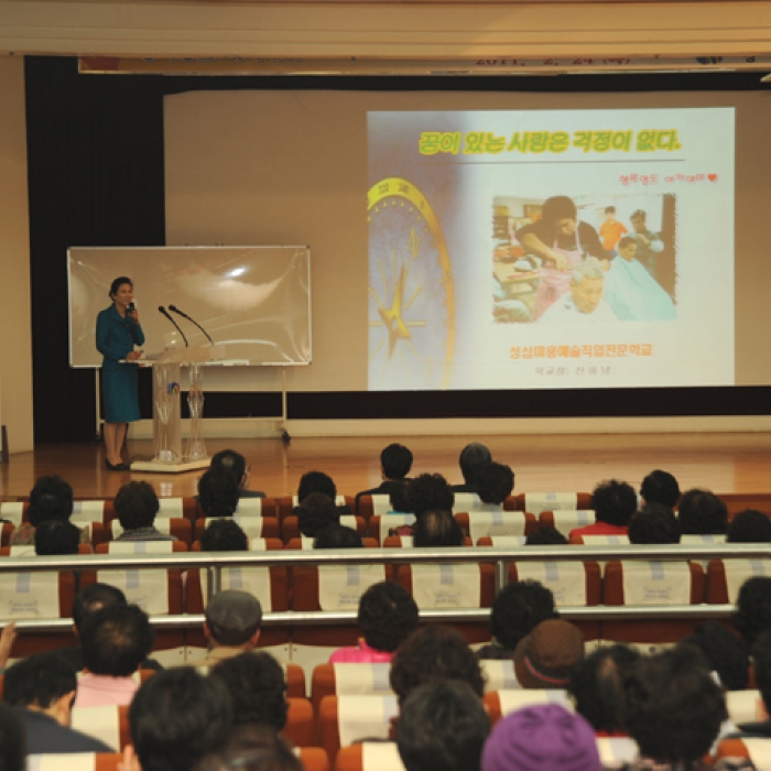 행복 영도 아카데미 강의중이신 학교장님 모습입니다.