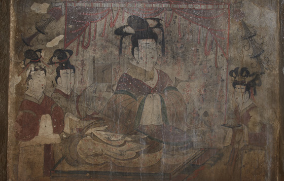 황해도 안악군에 위치한 안악 3호분의 벽화. 4세기 고구려의 벽화로 주인공을 비롯한 주변 인물들이 얹은머리를 하고 있다.