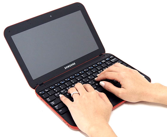 8인치 급 넷북(왼쪽)과 13인치 급 일반 노트북(오른쪽)의 키 크기 비교. | |