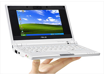 다만 일반적으로 최초의 본격적인 넷북은 인텔이 아톰을 발표하기 1년 전인 2007년에 대만의 아수스(Asus)사가 출시한 ‘EeePC’로 본다. EeePC의 첫 번째 모델인 700 시리즈는 인텔의 저가형 CPU인 셀러론(Celeron)과 800x480 해상도의 7인치 LCD를 탑재한 초소형 노트북으로, 무게가 920g에 불과해 휴대성이 높은데다 가격도 300달러 정도로 저렴해서 많은 관심을 받았다.